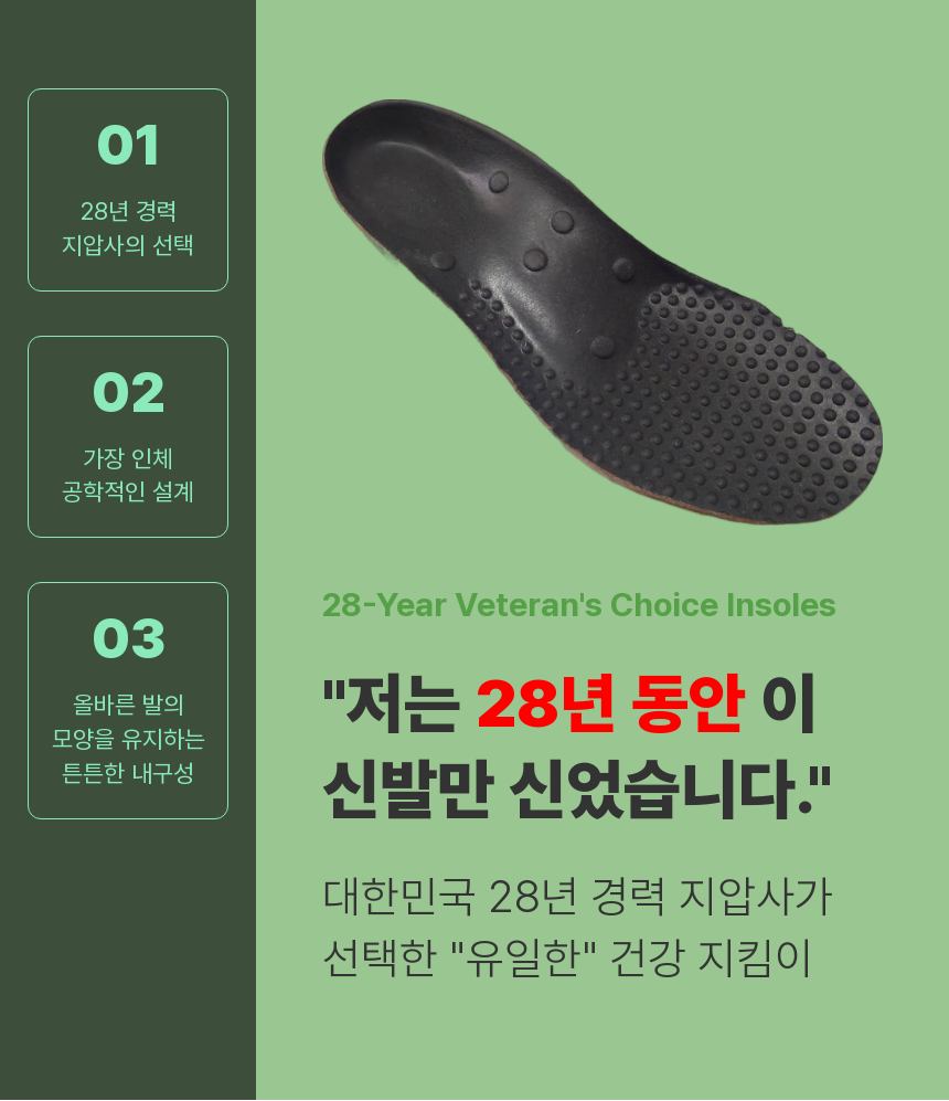 오늘, 제가 28년간의 임상 경험을 바탕으로 **제 발 건강을 위해 오랫동안 사용해 온 유일한 '지압 깔창'**을 공식적으로 소개해 드리고자 합니다.