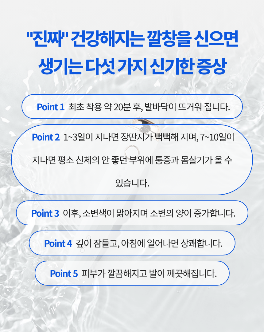| 지속성 | [작심삼일]아파서 벗어두게 됨 | [습관화]신발만 신으면 자동으로발 건강 관리 시작 |