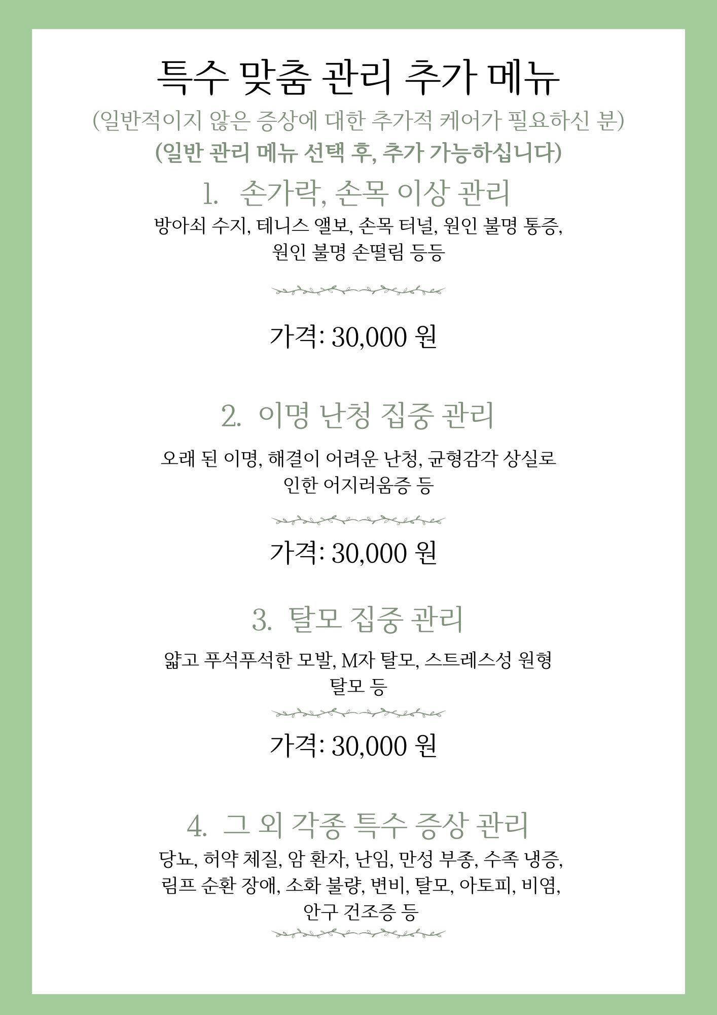 특수 맞춤 관리 추가 메뉴 | 3만원으로 완성하는 집중 케어